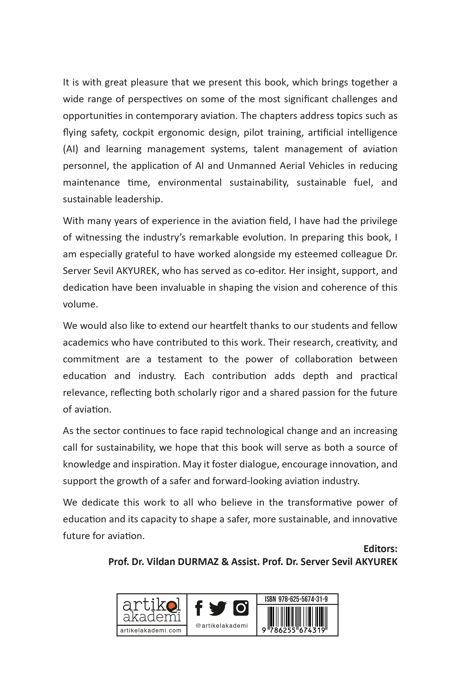 With many years of experience in the aviation field, I have had the privilege of witnessing the industry’s remarkable evolution. In preparing this book, I am especially grateful to have worked alongside my esteemed colleague Dr. Server Sevil AKYUREK, who has served as co-editor. Her insight, support, and dedication have been invaluable in shaping the vision and coherence of this volume.